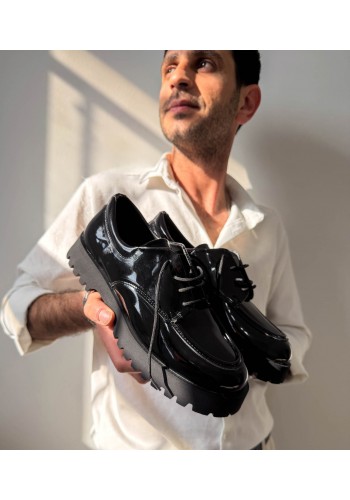 KB-KX6 Kuback Kömür Rugan Bağcıklı Günlük Unisex Ayakkabı